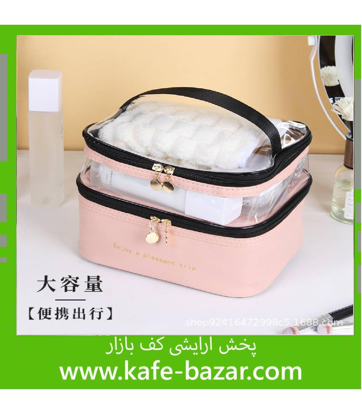کیف آرایشی دو طبقه چرمی