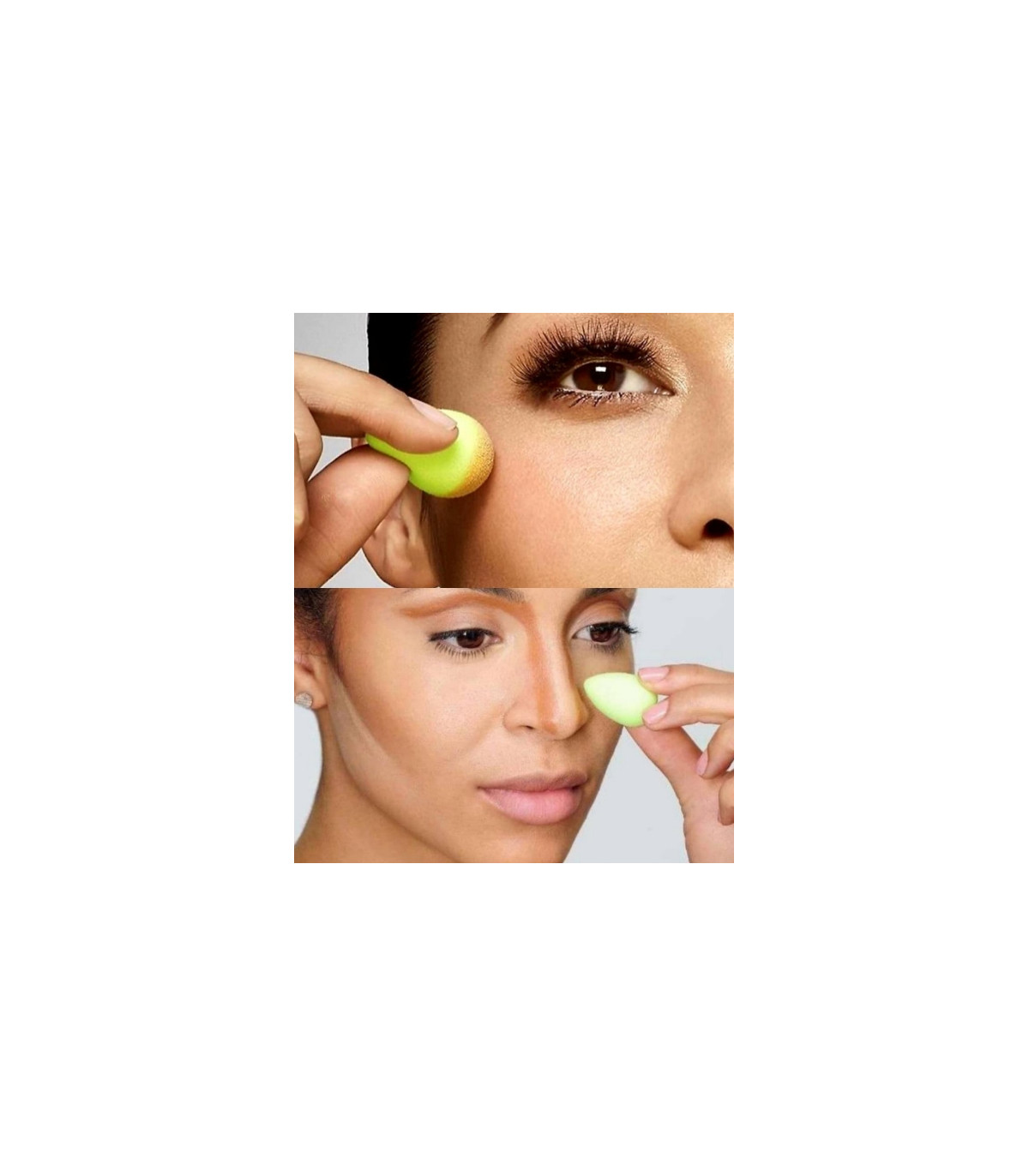 سایز این پدها تصادفی انتخاب نشده است. نوک تیز (Pointed Tip) این اسفنجها دقیقاً برای گوشه داخلی چشم، کنارههای بینی و روی لکهای کوچک طراحی شده است. قسمت پهنتر پایین آن نیز برای فید کردن کانسیلر در ناحیه زیر چشم عالی عمل میکند. بسیاری از افراد برای زیرسازی آرایش چشم و پخش کردن پرایمر سایه نیز از همین پدها استفاده میکنند.
