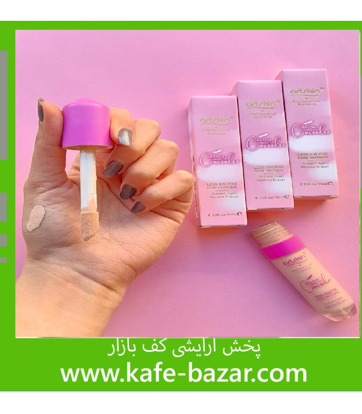 اعمال محصول: مقدار کمی از کانسیلر صورتی آرت اسکین را به شکل یک مثلث وارونه یا تنها روی تیرهترین قسمتهای زیر چشم بزنید.
