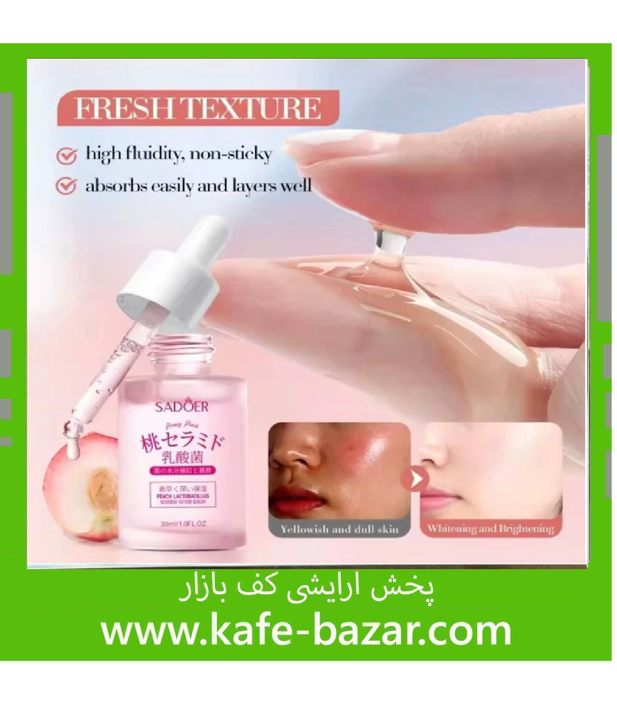 سرم هلویی سرامید سادوئر حاوی عصاره هلو و آمینواسید | قیمت عمده و تکی