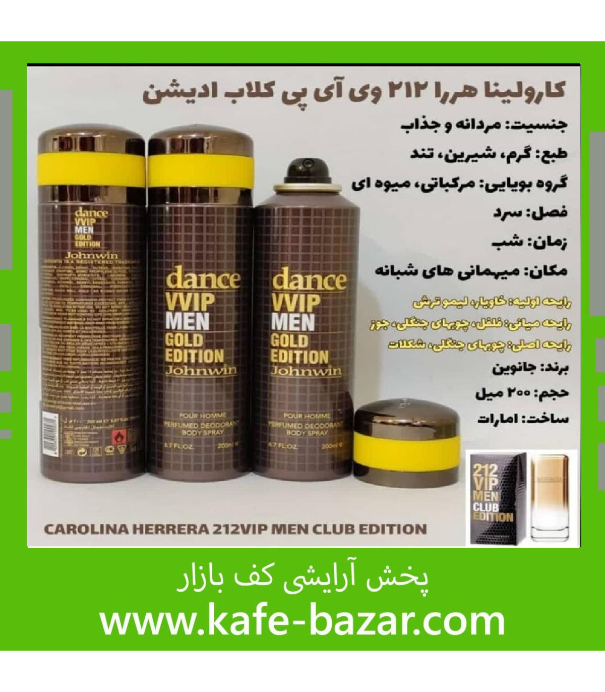 مشخصات فنی اسپری بدن جانوین 212 VIP Club